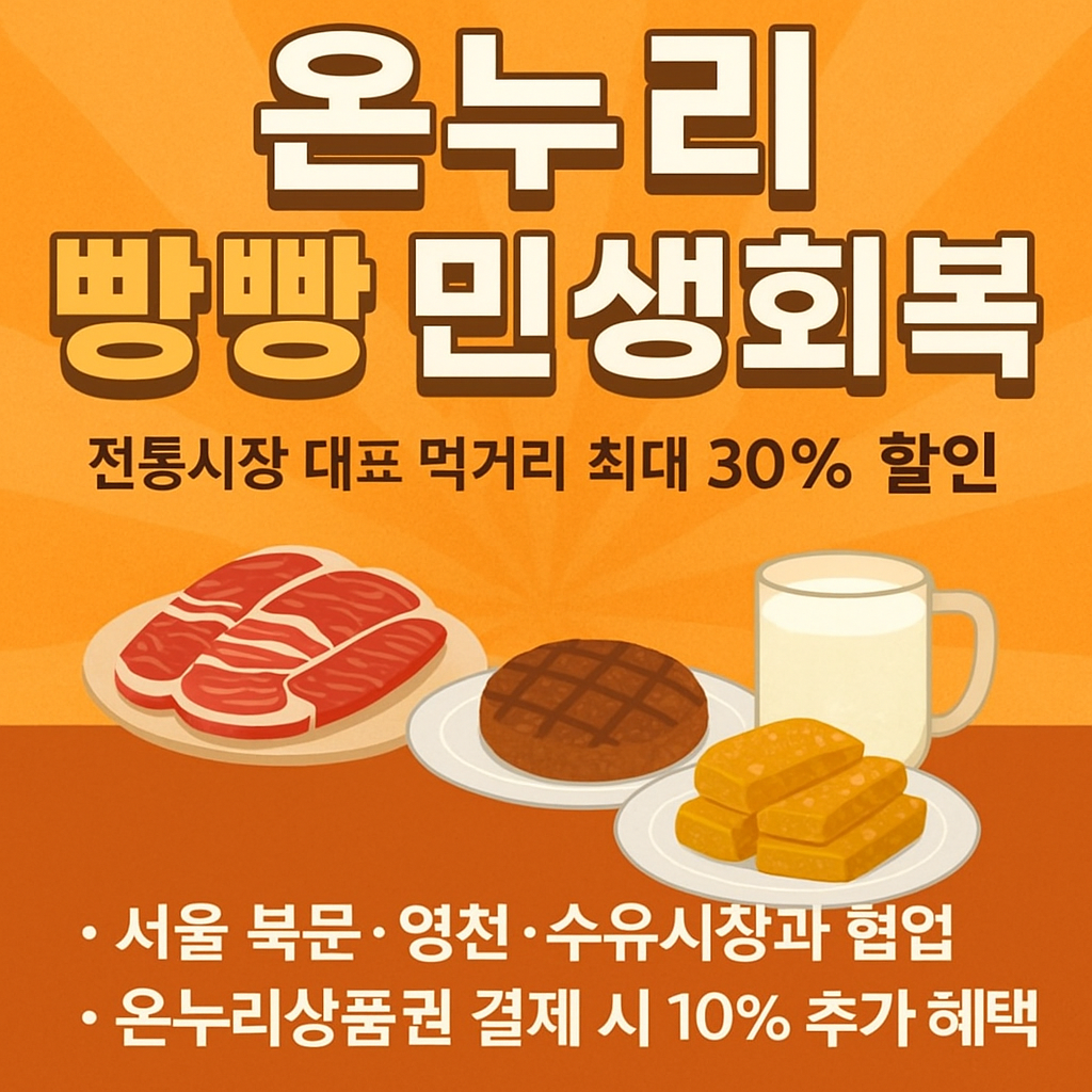 • 할인 혜택: 최대 30%, 온누리상품권 결제 시 10% 추가 할인 및 환급
